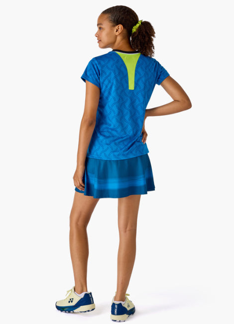 ※こちらの商品は後ろに生地の切り替えしが付いているため、背面プリントが出来ず日本バドミントン協会審査合格品とはなっておりませんが、合格着限定以外の一般的な大会や練習着のしてのバドミントン使用は可能となります。また同じシリーズのパンツは日本バドミントン協会審査合格品となります。